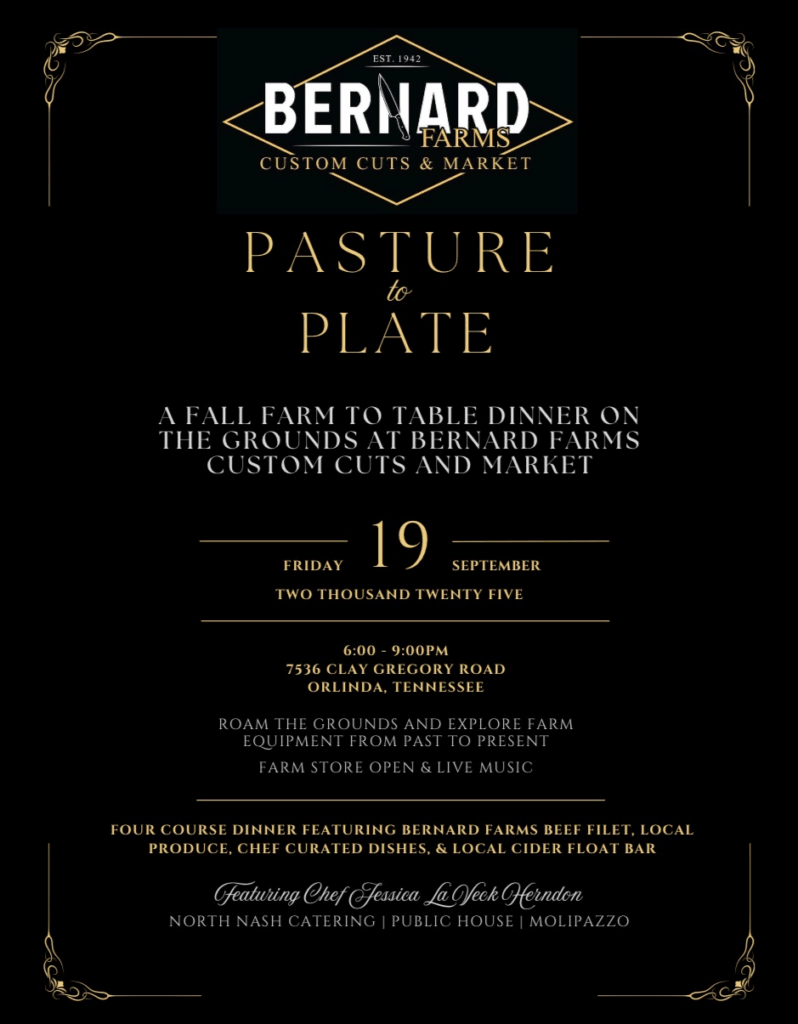 19sep6:00 pm9:00 pmBernard Farms - Pasture to Plate DinnerA Farm-to-Table Fall Dinner Experience at Bernard Farms
