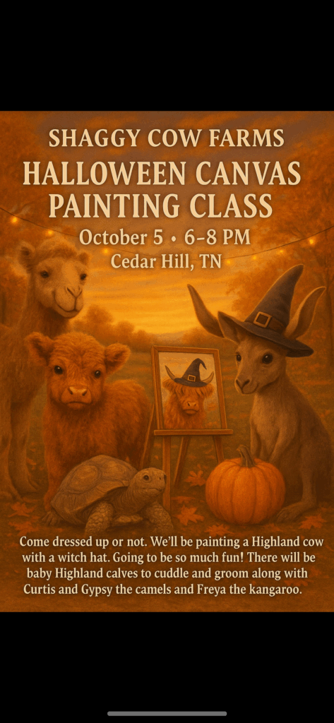 05oct6:00 pm8:00 pmBoo Moo and Brush - Paint & CuddlePaint • Snack • Cuddle Baby Calves, A Halloween Night to Remember! Spots are limited, reserve yours today!