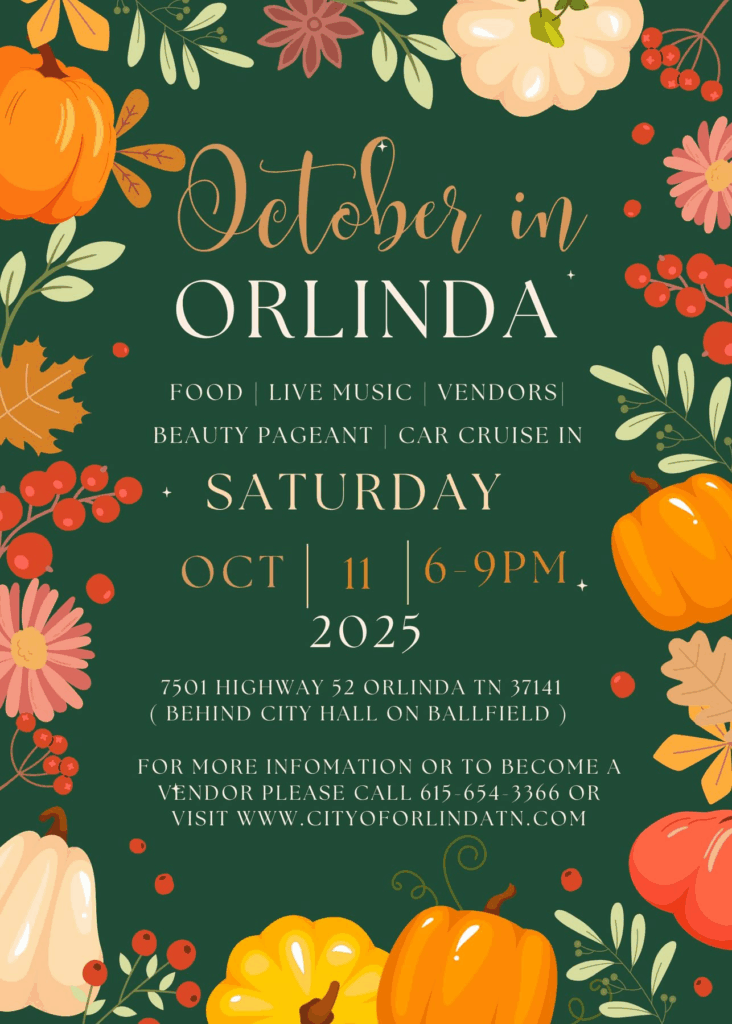 11oct6:00 pm9:00 pmOctober in OrlindaFall Fun for the Whole Family – Food, Music, Vendors & More!