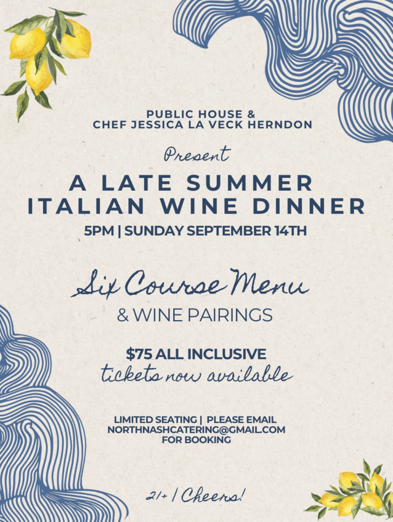 14sep5:00 pm8:00 pmPublic House - Late Summer Wine DinnerAn Elegant Evening of Six Courses & Fine Italian Wine Pairings - $75 tickets!
